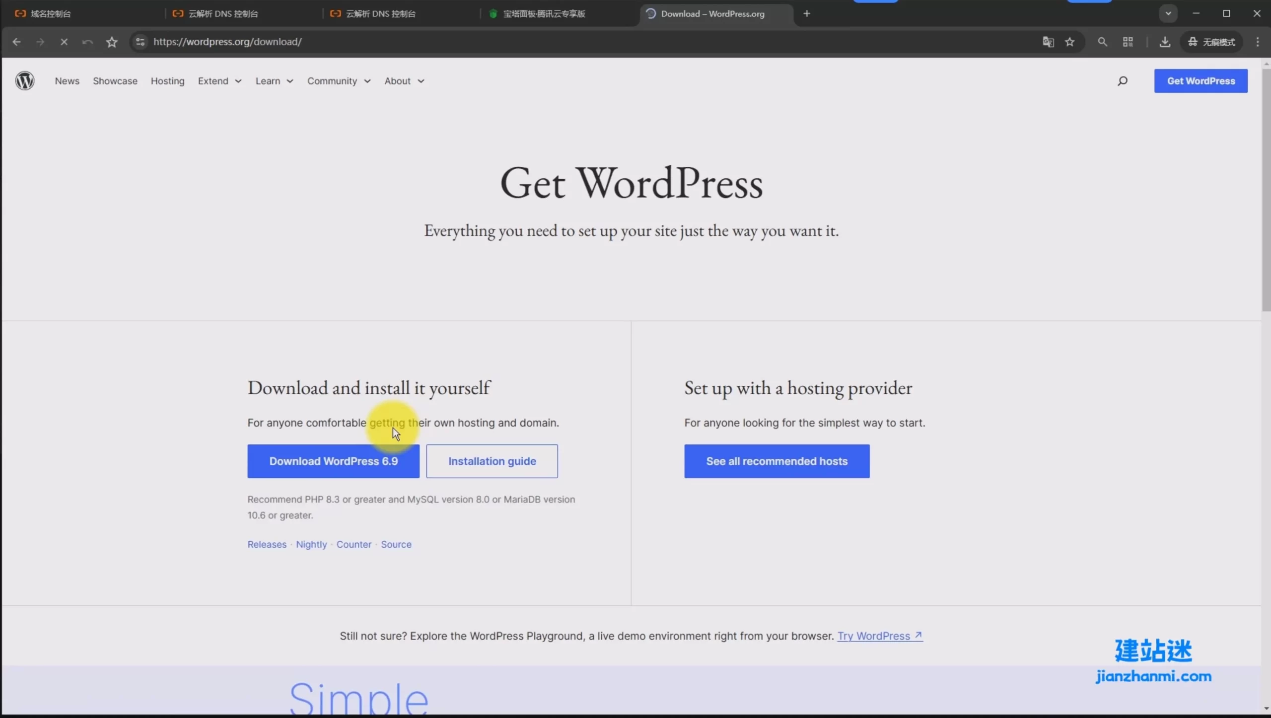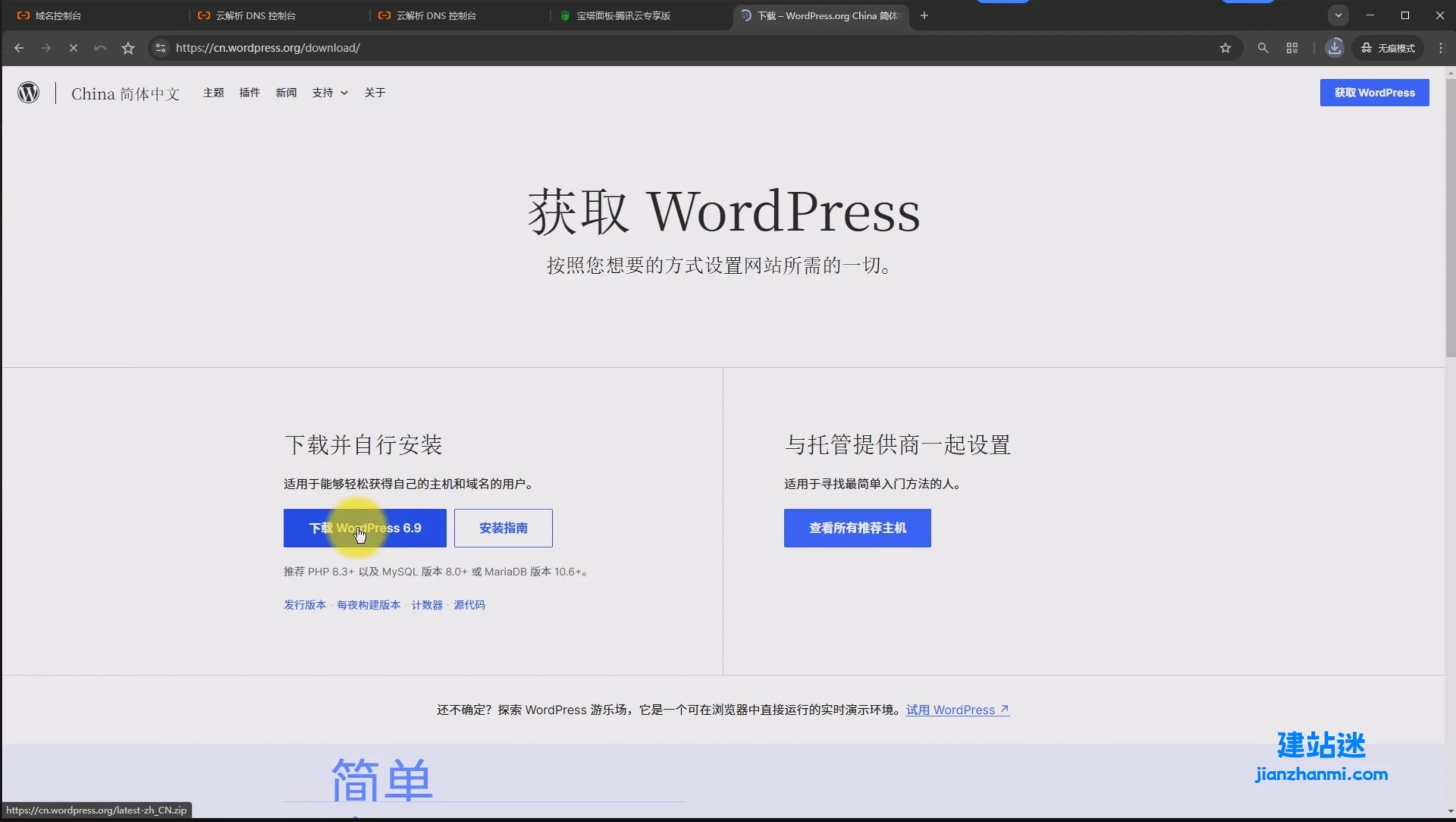 如何在官网下载WordPress程序