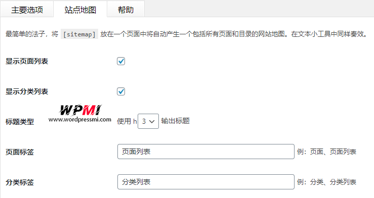 仅打印分类列表。与[sitemap_pages]属性相同。