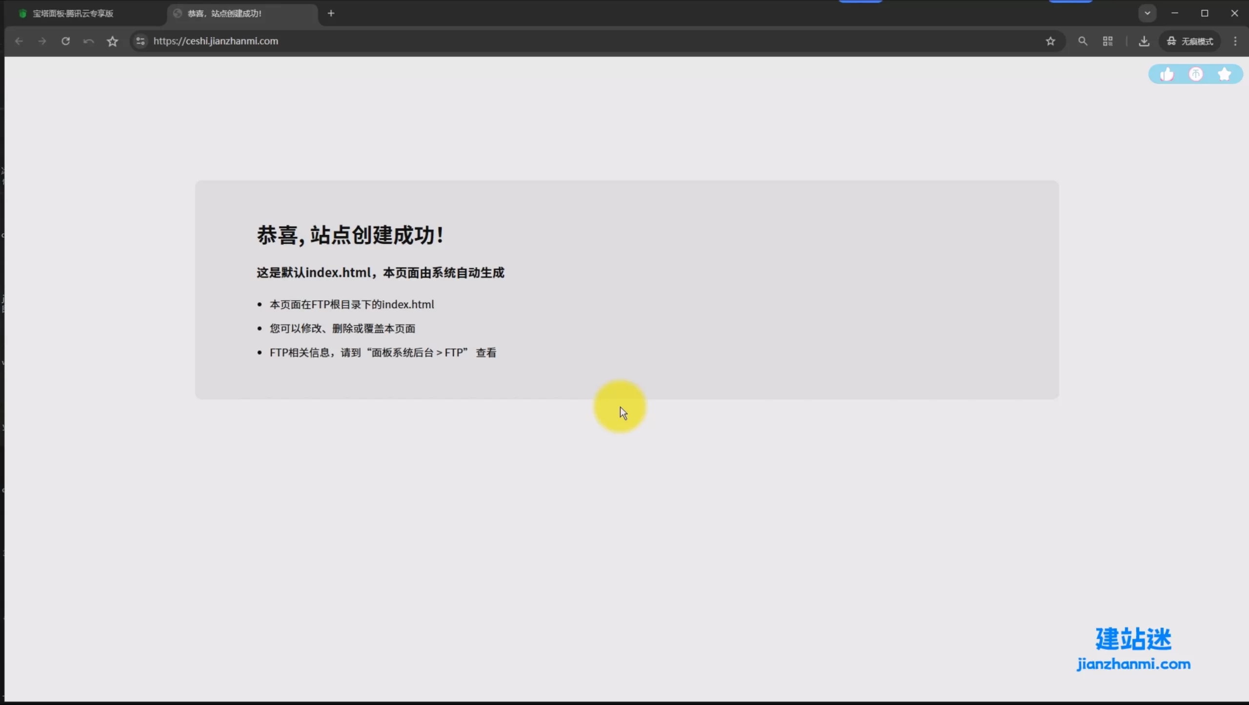 添加完成后,点击【确定】,然后访问刚解析的域名就能看到类似下图的内容。